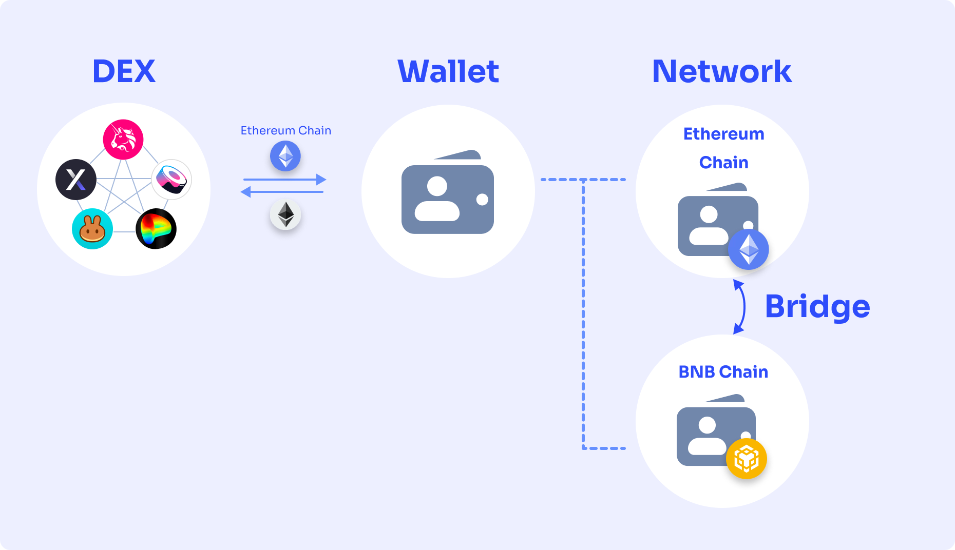 If you have crypto assets in your wallet already but on another chain, you can buy **wrapped tokens** on that chain and transfer them to the Polygon or Evmos chain by using **bridge service.**